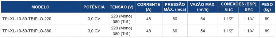 • Proteção contra bloqueio do rotor da bomba, superaquecimento do conjunto e falta de água na sucção