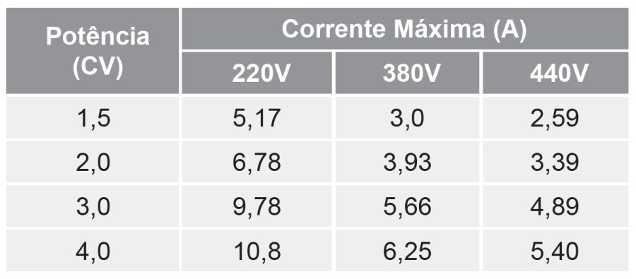 • Potência: 1,5CV - 2,0CV - 3,0CV - 4,0CV