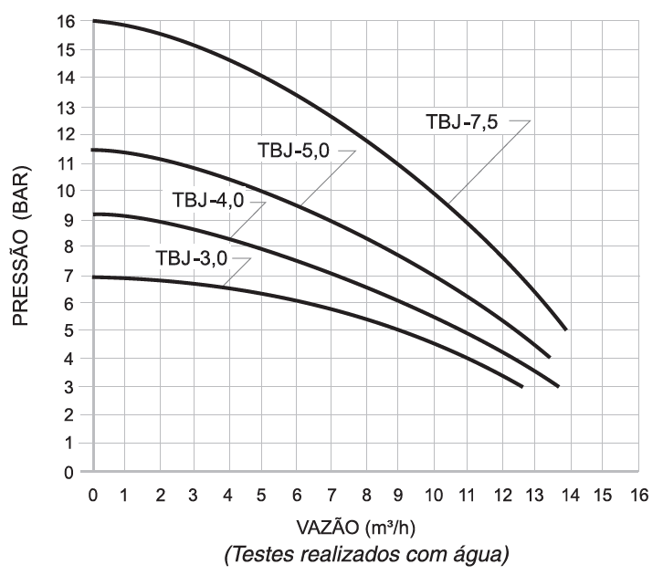 • Pressão máxima: 7BAR - 3,0CV / 9BAR - 4,0CV / 11,5BAR - 5,0CV / 16BAR - 7,5CV