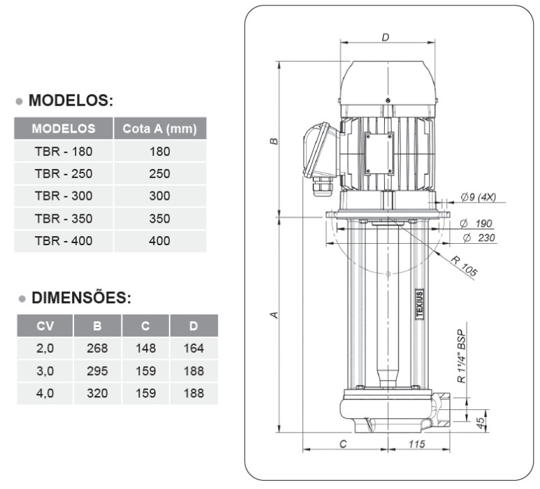 • Potência: 2,0CV - 3,0CV - 4,0CV