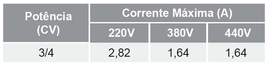 • Eixo: Aço carbono SAE 1045 (opcional Inox)