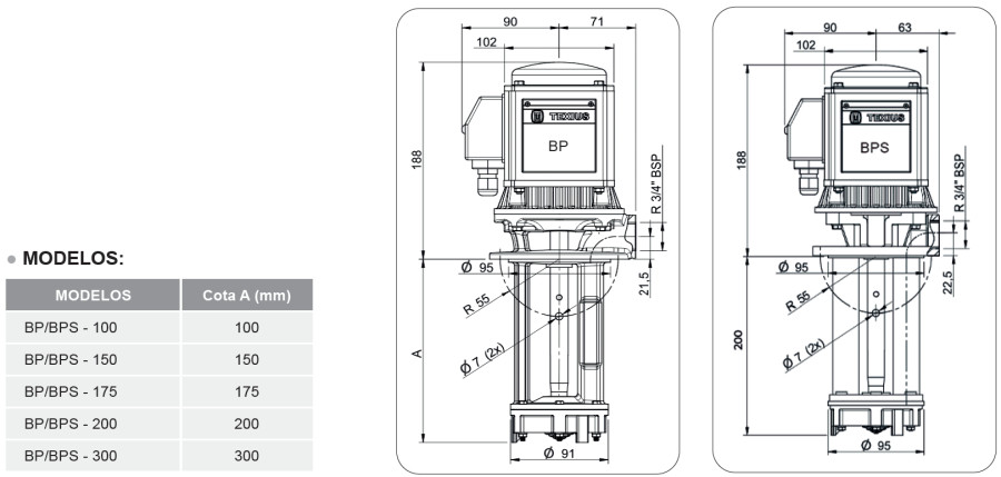 • Recalque: 3/4" BSP