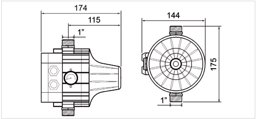 • O pressostato também possui uma válvula de retenção incorporada que mantém a rede sempre pressurizada