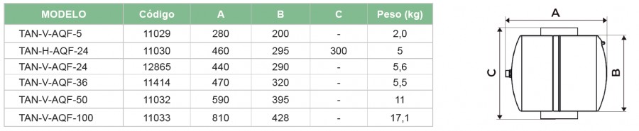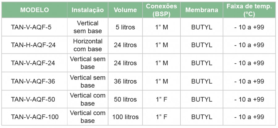 • Capacidade: 5, 24, 36, 50 ou 100 Litros